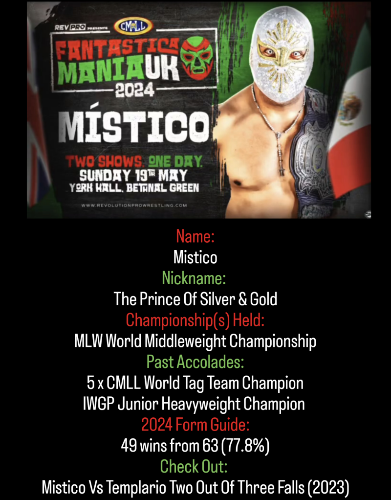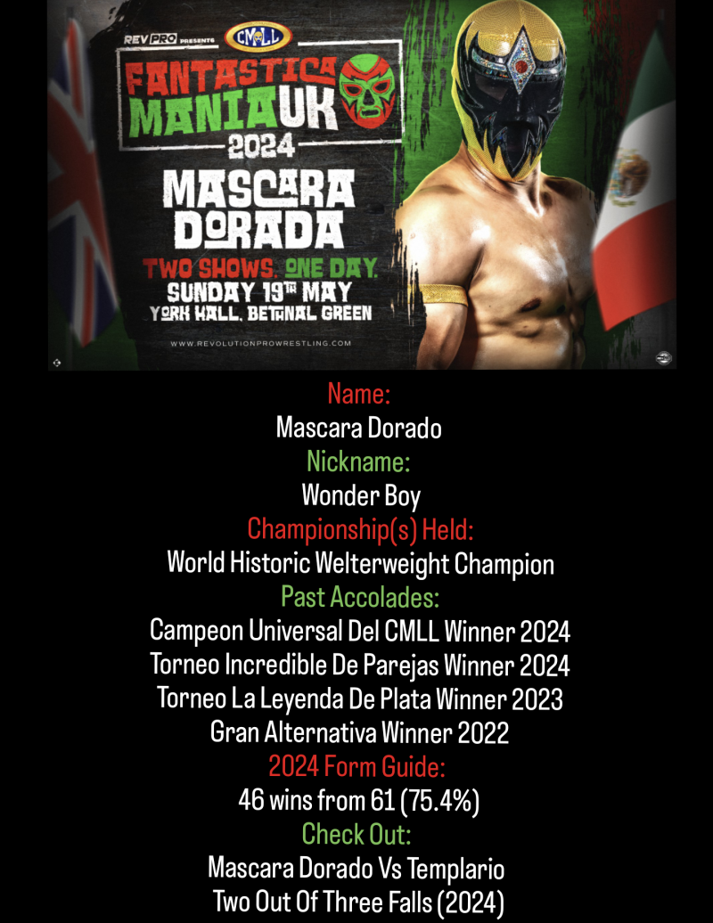 Fantastica Mania UK 2024 is just ten days away and with the cards starting to take shape, it is time to get hyped for the wealth of talent on display. If you, like me, are dipping your toe into the world of CMLL for the first time, then here's a quick run through who will be stepping through the curtain of York Hall to face the best of Revolution Pro Wrestling. s RevPro and CMLL being us two shows of Pro Wrestling At Its Best in one day. Bienvenido a la revolución mis amigos.