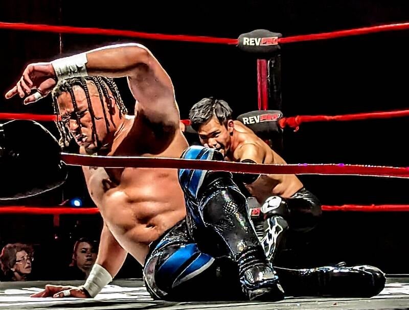 We have a name; Slater's Dojo. I like it. More importantly, though, we have a championship match for Southampton. Cameron Khai, Liam Slater's Third Man to the team, pinned Nino Bryant when Liam and Cameron fought Nino and Zander Bryant and, out of frustration, and to prove he is the BEST Cruiserweight wrestler in RevPro, Nino challenged Khai for the belt this Sunday. Mission accomplished for the Dojo? Yes, according to Khai, but everything about Liam's body language afterwards suggests no; is it too soon for Khai? Did Slater want it on his terms, with more time to prepare? The Backstage Reactions will undoubtedly reveal more.