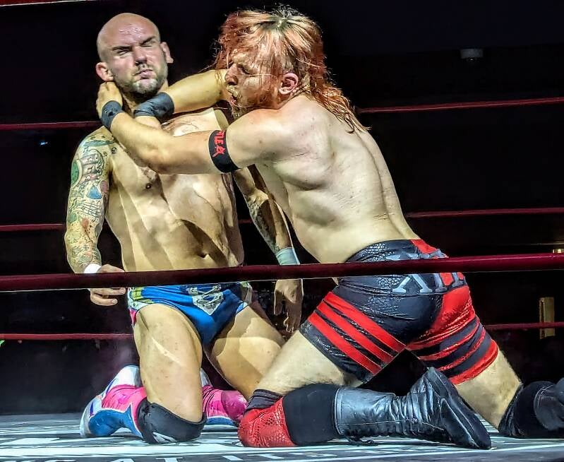 And finally, two men whose opportunity to make an all important W was taken from them were Connor Mills and Luke Jacobs. During an unbelievable contest in the coveted fourth, pre-interval spot on the card, Mills and Jacobs showed why they are the two most exciting talents in RevPro for fans of puro. Mills has adapted his style to combine strikes and submission work, making his offence even more targeted and technical. Jacobs has the strength, the explosive power, the stubborn chin and the air of confidence of a star waiting to be given the big spot. Coming into this match the two were 1 and 1 in singles matches; Jacobs took victory in 2022, Mills in 2023 and now, after Sheffield, they are 1, 1 and 1 as this match ended in a dramatic double knockout. After just surviving a double countout following Mills' double stomp to the outside, this time on to Jacobs as he hung over the guardrail, the two's night ended after a huge headbutt from 'North West Strong' floored both men and called time on their match, ref Chris Hatch deeming neither man fit or safe to continue. This was spectactular and deserves to be seen; if you only have time for one match from this show, make it this one. The finish took nothing away; it added so much to what was already, at that point, a blowout performance from both men. There are three shows between now and the Rumble, in London, Coventry and St Neots - they could run this back as a Best of 3 Series across all three shows and I would not be close to being tired of seeing it. Two of the best Europe has to offer at their very best. Bring on round two.