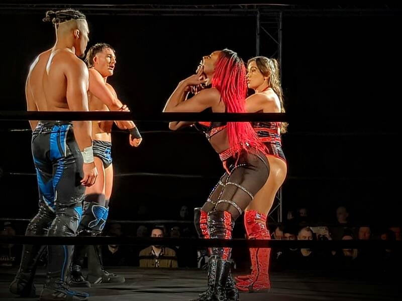 Someone who is having no problem turning performances into results is 'The Radioactive One', Safire Reed. And momentum is now certainly with the challenger after she got the pinfall win over Dani Luna after a devastating Shining Wizard on Sunday in the 229. Has anyone started 2024 better than Safire? A decisive victory over Kanji in their best of three falls match last month followed by victory over the Undisputed British Women's Champion in tag action this month, teaming with the returning and impressive Alexxis Falcon. Luna, who was tagging with Kanji, looked out for the count after the Shining Wizard and, you have to think, that'll be in the champ's head now; Reed hit it out of nowhere on Sunday and it was game over. Same again next week and we have a new Undisputed British Women's Champion.