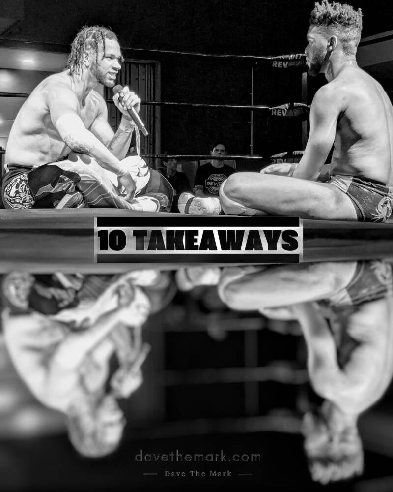 Michael Oku had Sha Samuels tied up in a pin but was far from set in his position. As he struggled to remain in position, with a weight distribution leverage over the champion, he reached for the ropes for balance and fell into them, breaking the pin. The look that Oku gave the ropes; the look Amira gave the ropes and the look she gave Oku. The frustrated kick to the ropes afterwards... Did Michael Oku lose his shot at the Undisputed British Heavyweight Championship because he hesitated against taking a shortcut that others would have not thought twice about? If Oku could replay that match, I'd love to know if he'd take that out; if he did, this Takeaway would have been named And New...
